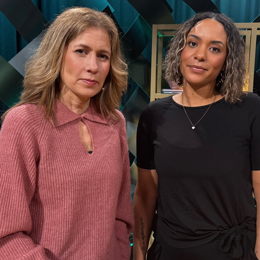 Professor Stina Syvänen berättar för programledaren Rickard Sjöberg om hur viktigt Postkodlotteriet och lottköparnas stöd är till Alzheimerfonden och vad det betyder för svensk alzheimerforskning.